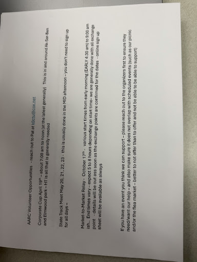 AARC Volunteer Opportunities - reach out to Pat at [email protected]